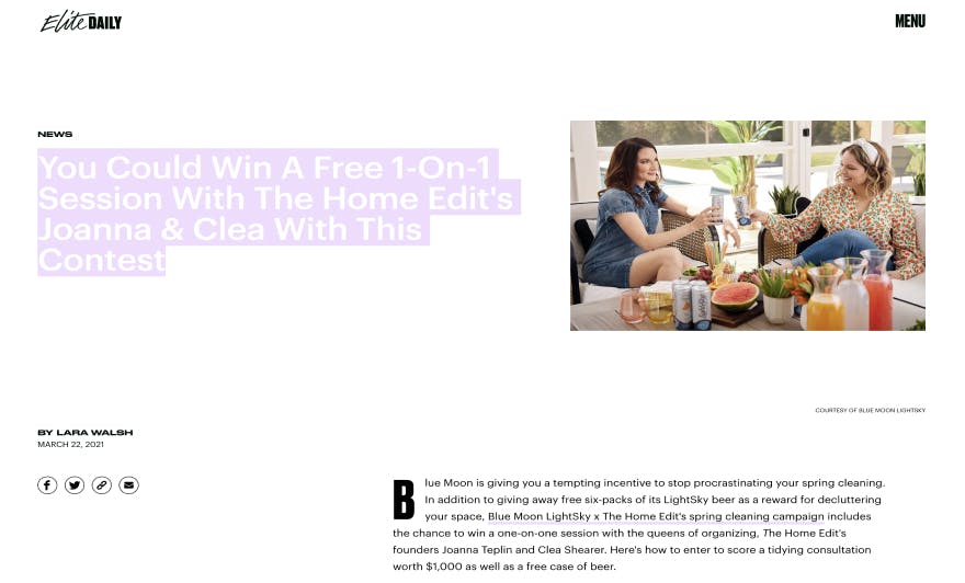 Alongside The Home Edit, we executed a 360 campaign to inspire people to declutter their homes and donate six items to charity. By doing so, they’d receive a six pack of LightSky, and one lucky winner would win a virtual 1:1 session with The Home Edit.